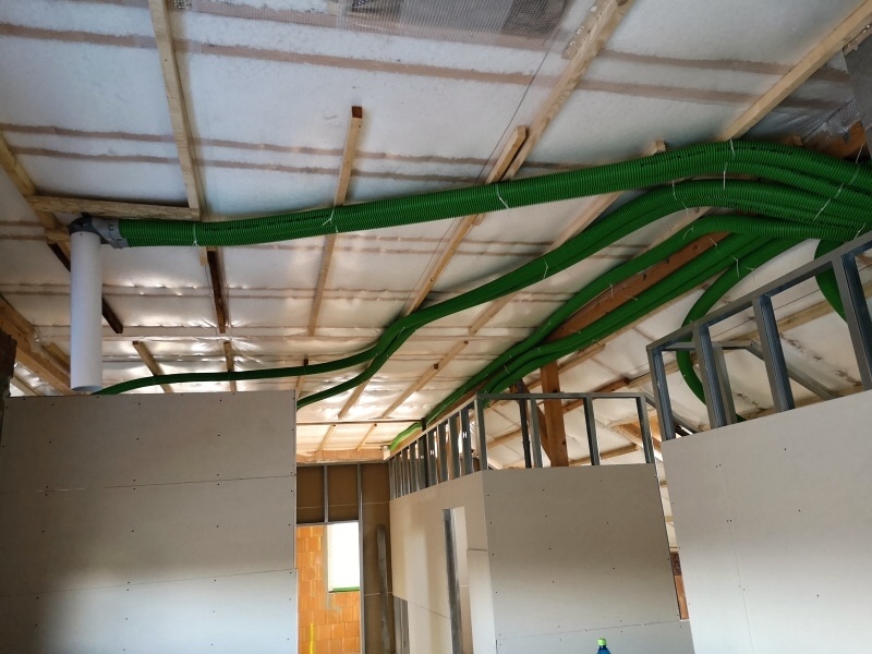 Rozvody rekuperácie, potrubie PEFLEX antibakteriálna a antiplesňová úprava.